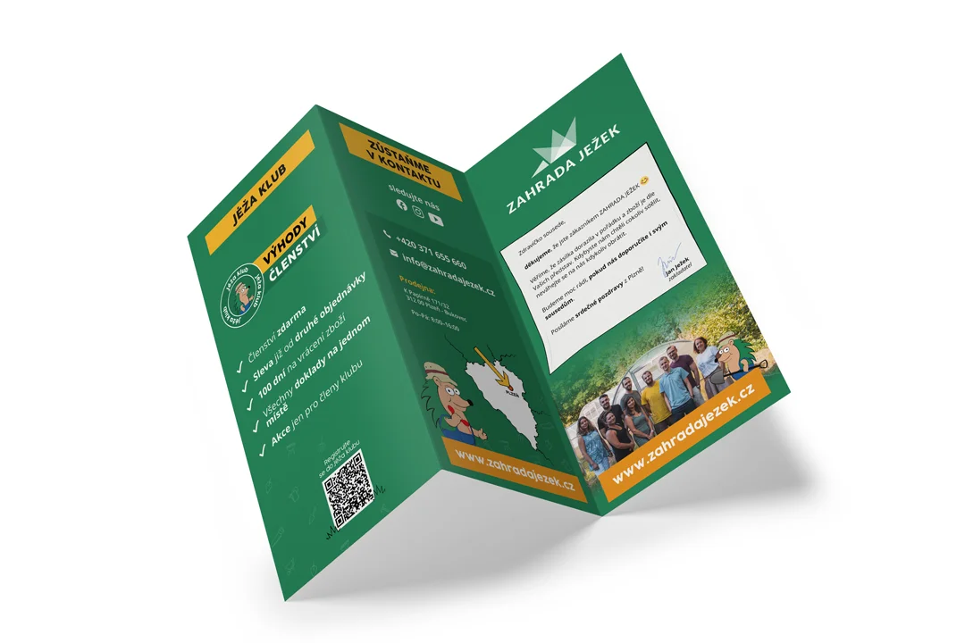 Pro Zahradu Ježek tvořím grafiku pro sociální sítě, pro e-shop, propagační materiály, letáky a další tiskové materiály.